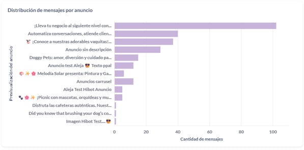 ● Distribución de mensaje por anuncio: Muestra cómo se distribuyen los mensajes