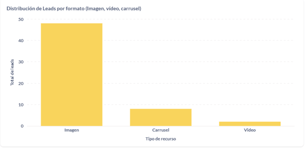 ● Distribución de Leads por formato (Imagen, vídeo, Carrusel): Muestra qué formato