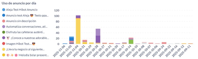 ● Uso de anuncio por día: Indica la frecuencia o rendimiento diario de los anuncios,