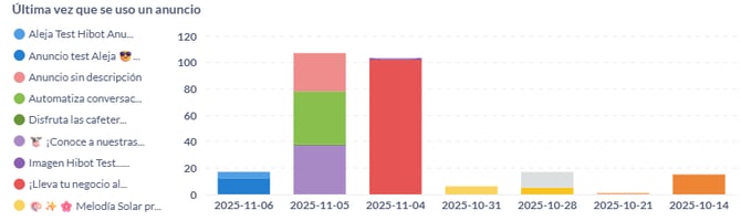 ● Última vez que se usó un anuncio: Indica la fecha de la última interacción de un lead