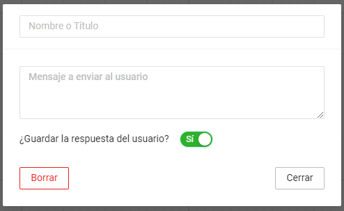 - Seleccionar si quiero o no guardar la respuesta del usuario.