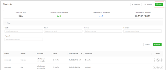Para utilizar esta funcionalidad, debes estar dentro del módulo de creación de chatbots y tener los permisos para el módulo.