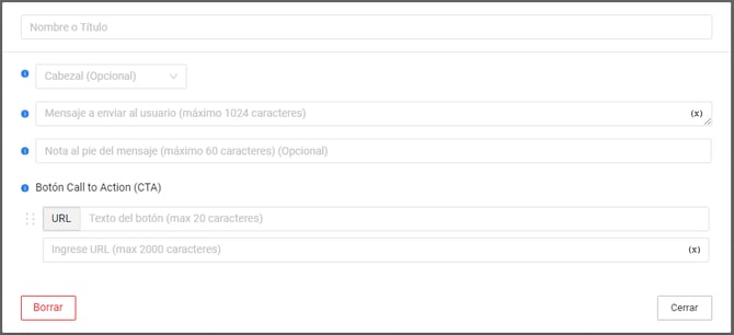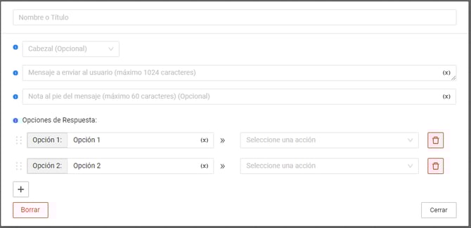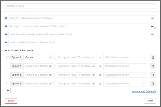 A tener en cuenta: Se permite configurar hasta 3 botones, debido a las limitaciones de WhatsApp.