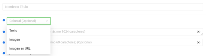 - Seleccionar un cabezal: Este es opcional y puede ser una texto, una imagen o una URL que redirige a una imagen.