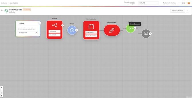 Las acciones deben estar conectadas entre sí para lograr formar el flujo conversacional que queremos que tenga el bot.