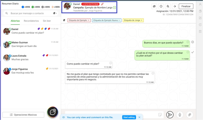 Esta información está disponible para los agentes que gestionan conversaciones desde la plataforma.
