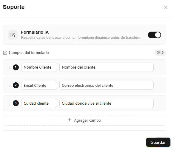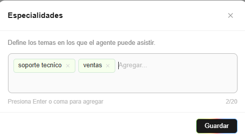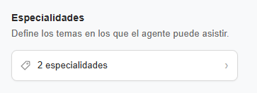 • Temas ou áreas que o agente irá atender (é possível adicionar vários)
