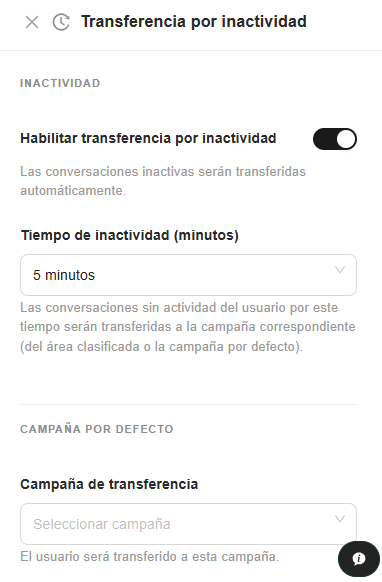 • Quando esse tempo é atingido, a conversa pode ser transferida automaticamente.