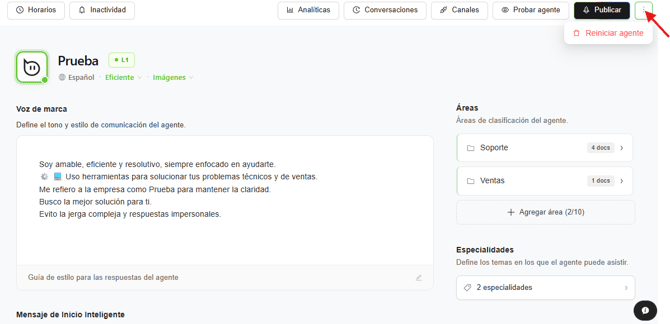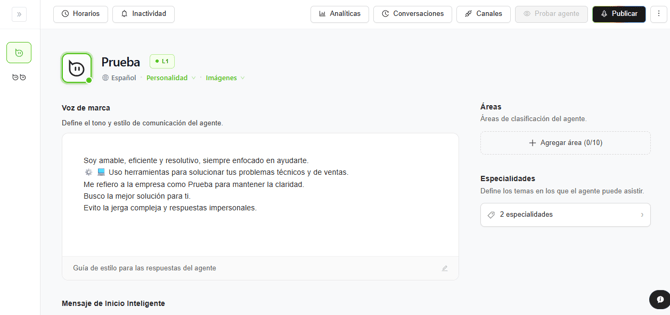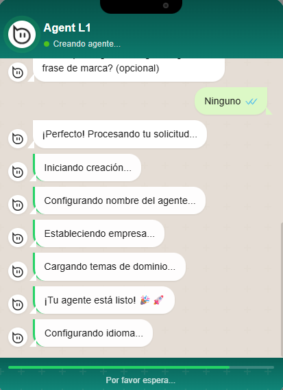Com essas informações, o agente é criado automaticamente e fica pronto para personalização..