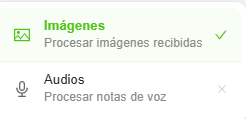 • Arquivos multimídia que o agente pode processar: permite que os clientes enviem arquivos e que o agente consiga interpretá-los corretamente. É possível habilitar imagens, áudios ou ambos.