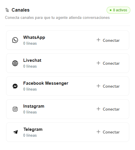 Permite conectar o agente aos canais que já estejam integrados à Hibot.