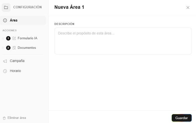 As Áreas representam departamentos ou tipos de atendimento (ex.: suporte, vendas, cobranças).
