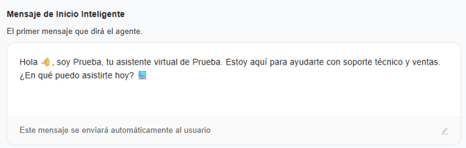 Este campo contém a mensagem inicial que o agente envia automaticamente ao iniciar uma conversa.