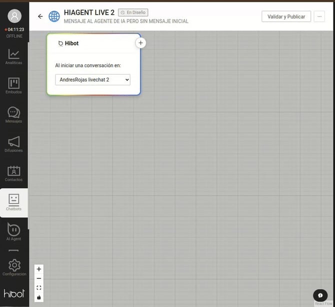 Aqui você aprenderá a usar o nó de Agente de IA no módulo de chatbots da Hibot. Saiba como delegar suas conversas para Agentes de IA e otimizar seu atendimento.