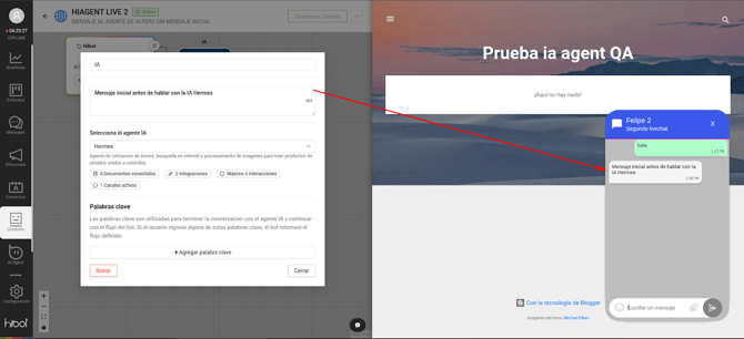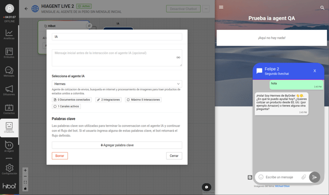 Como usar o nó de Agente de IA no módulo de chatbots da Hibot?