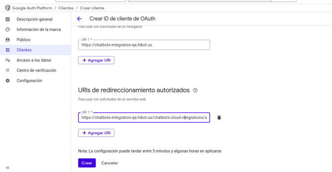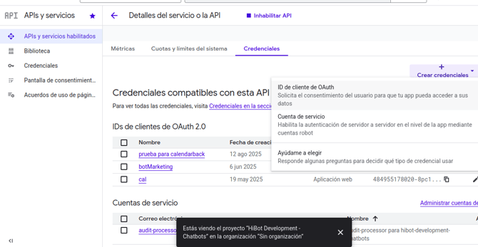 Você deverá gerar novas credenciais na plataforma correspondente e atualizá-las na Hibot usando a opção "Editar".