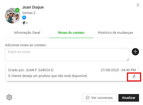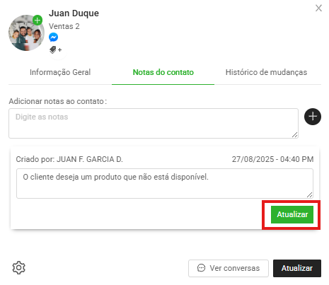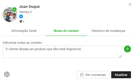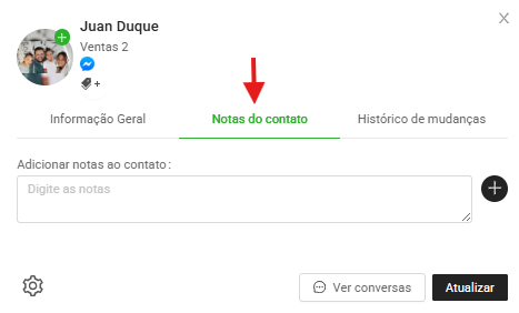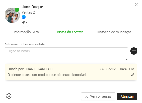 Importante: qualquer pessoa que tenha acesso ao funil pode consultar as notas dentro dos leads e criar uma, se necessário.