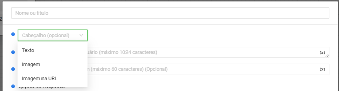 2. Selecione um cabeçalho: é opcional e pode ser um texto, uma imagem ou um URL que redirecione para uma imagem.