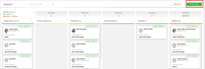 1. Acesse o módulo de funis e clique no botão “Novo Funil”