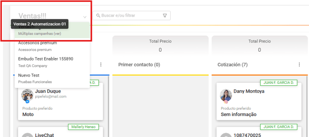 5. Além disso, você também pode usar a opção de filtros para filtrar seus leads no funil de acordo com a campanha.