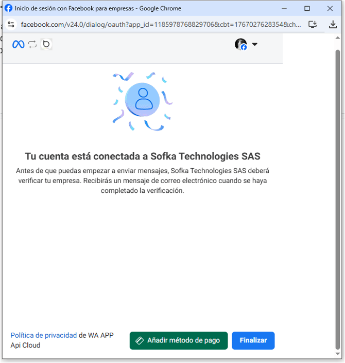 Durante o processo, também será exibida a opção de acesso à pasarela de pagamentos da Meta.